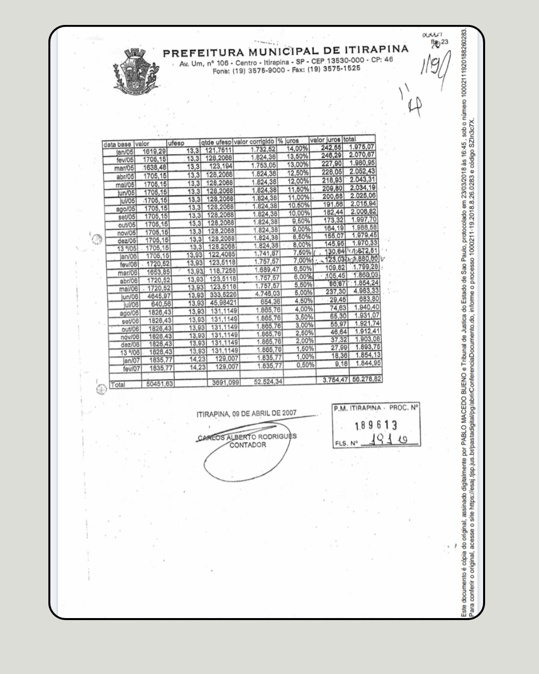 A Explosão da Dívida: O valor que começou em R$ 50 mil saltou para R$ 316.847,46. Esse é o valor que o Município teve que buscar via “cumprimento de sentença” (execução forçada). Itirapina ficou 18 anos sem esse recurso que, com juros, daria para custear meses de merenda ou saúde básica.