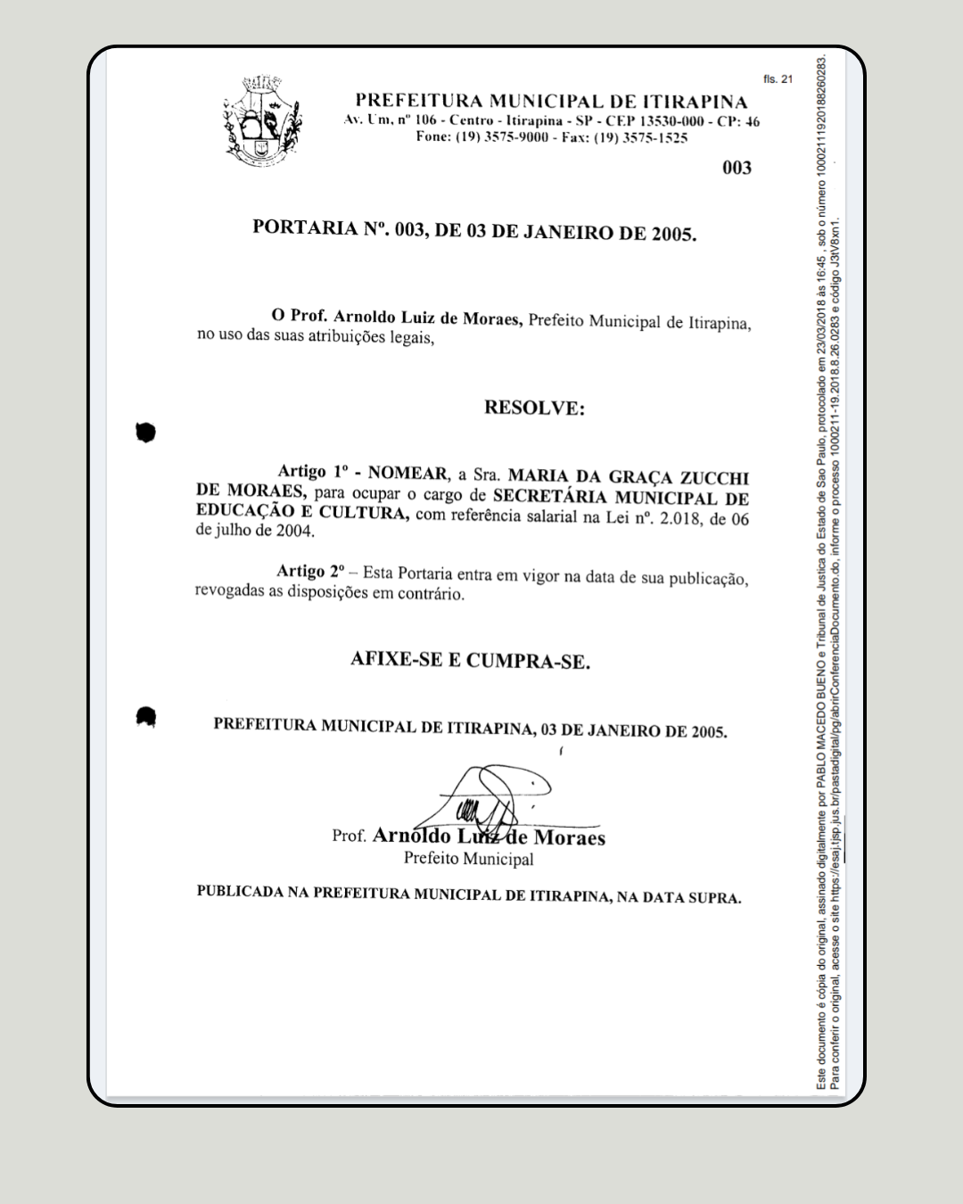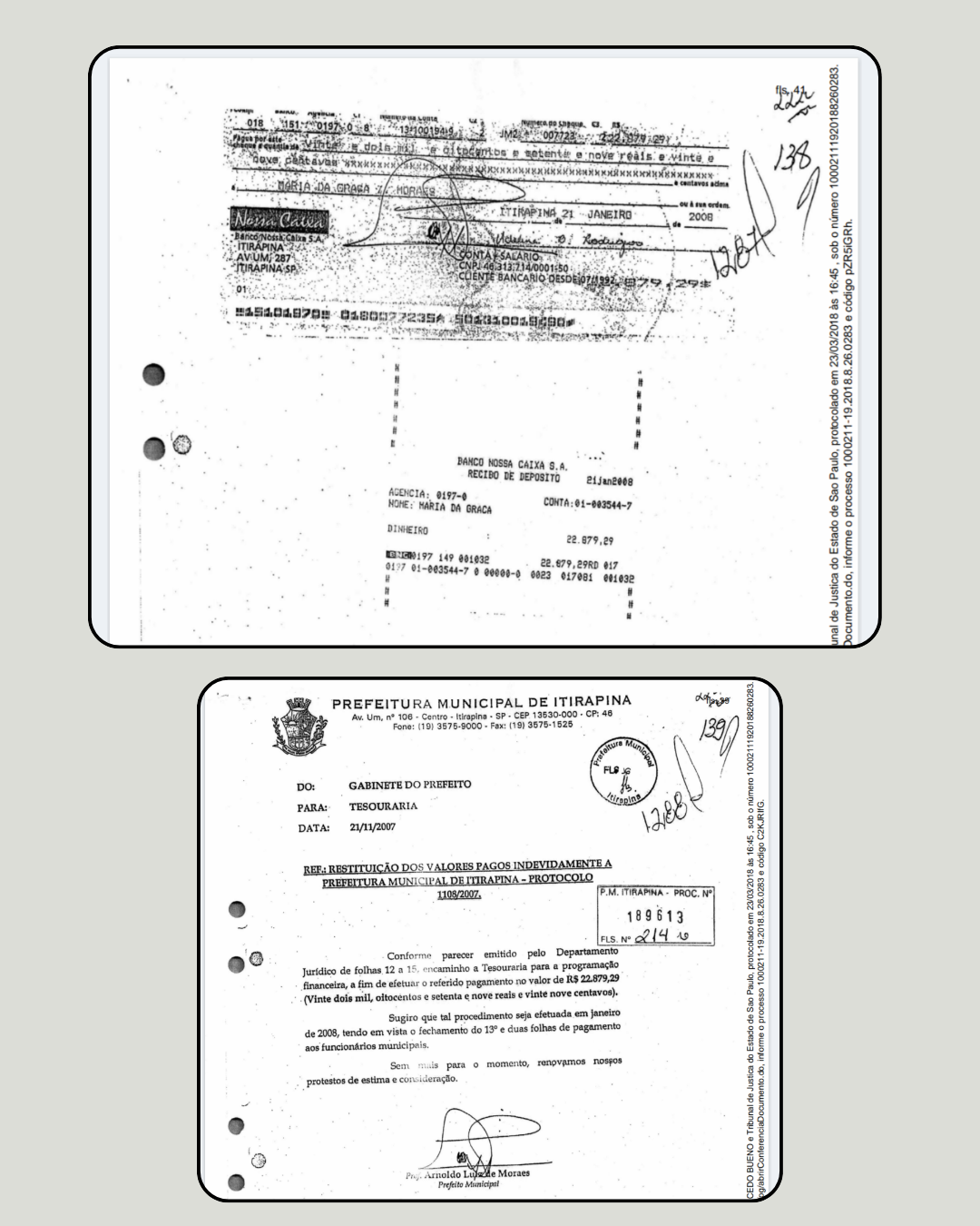 A investigação aponta o ponto crucial que afasta qualquer alegação de “erro administrativo”. Após o Tribunal de Contas detectar a irregularidade, a então secretária devolveu parte dos valores. Entretanto, logo em seguida, ela solicitou a restituição do que havia pago. Quem autorizou que o dinheiro público voltasse para o bolso dela? Seu marido, o então Prefeito Arnoldo Luiz de Moraes.