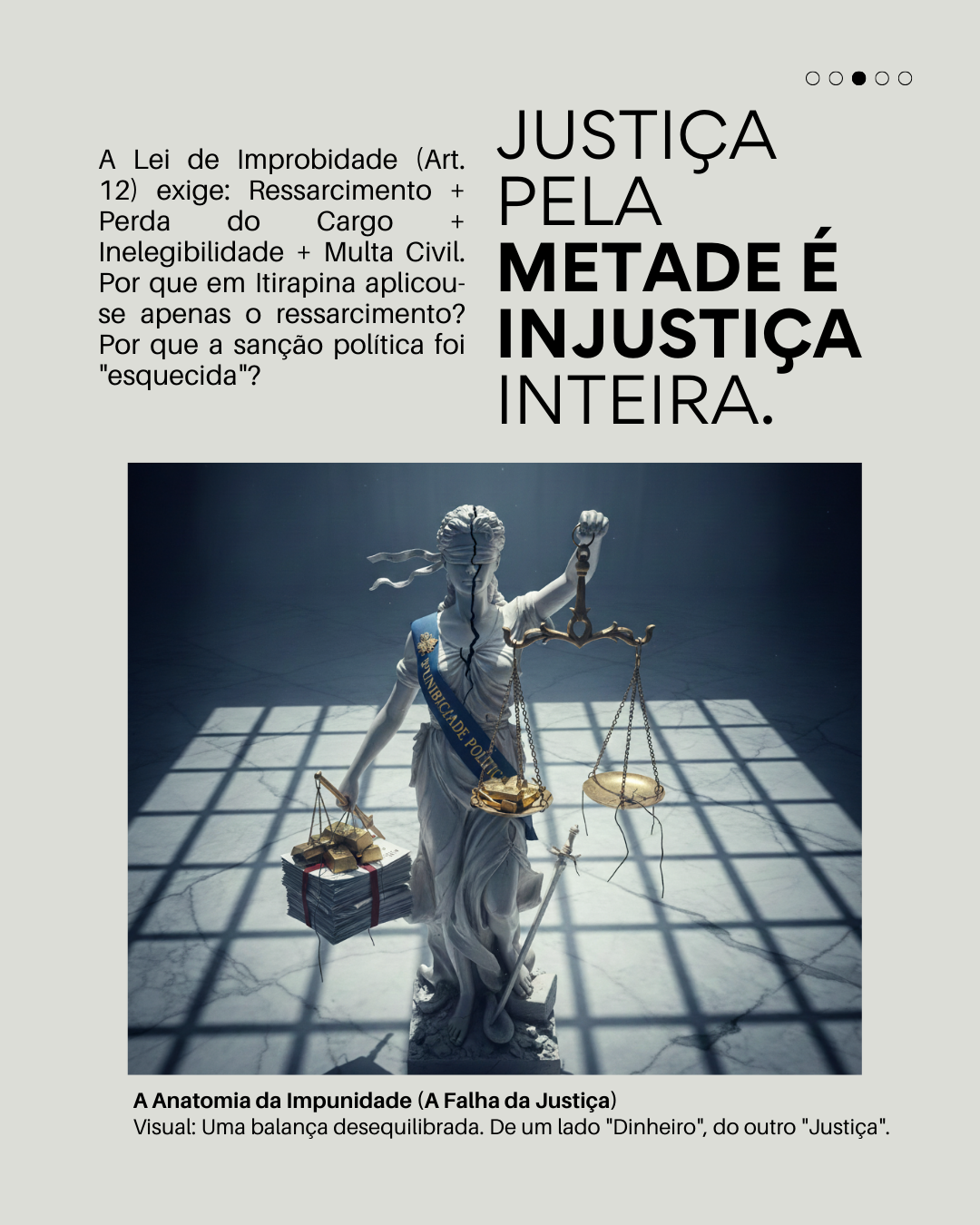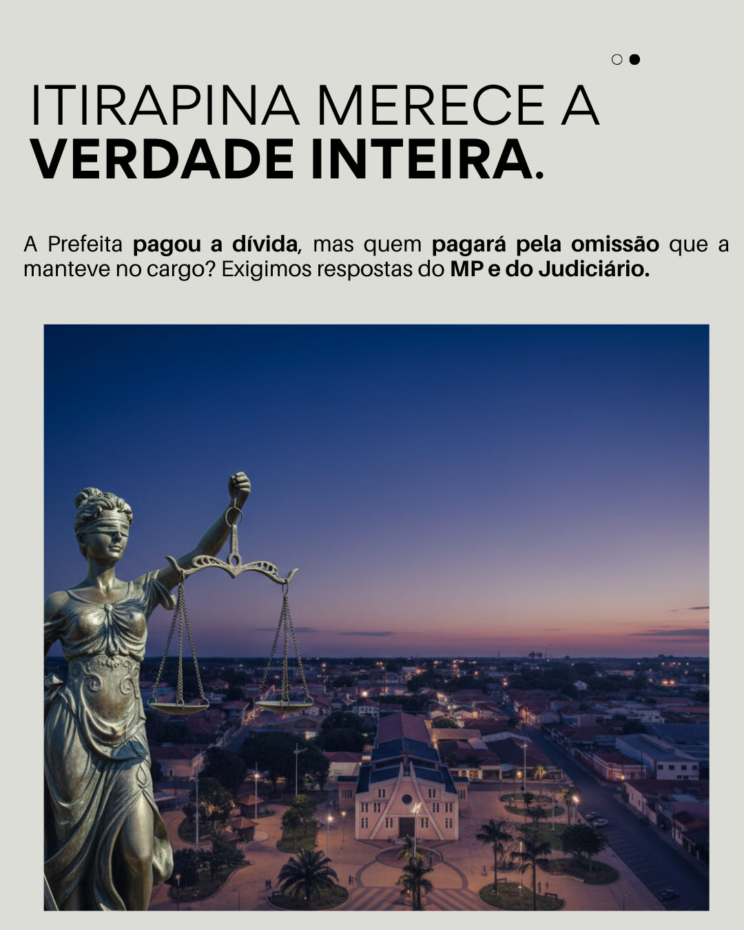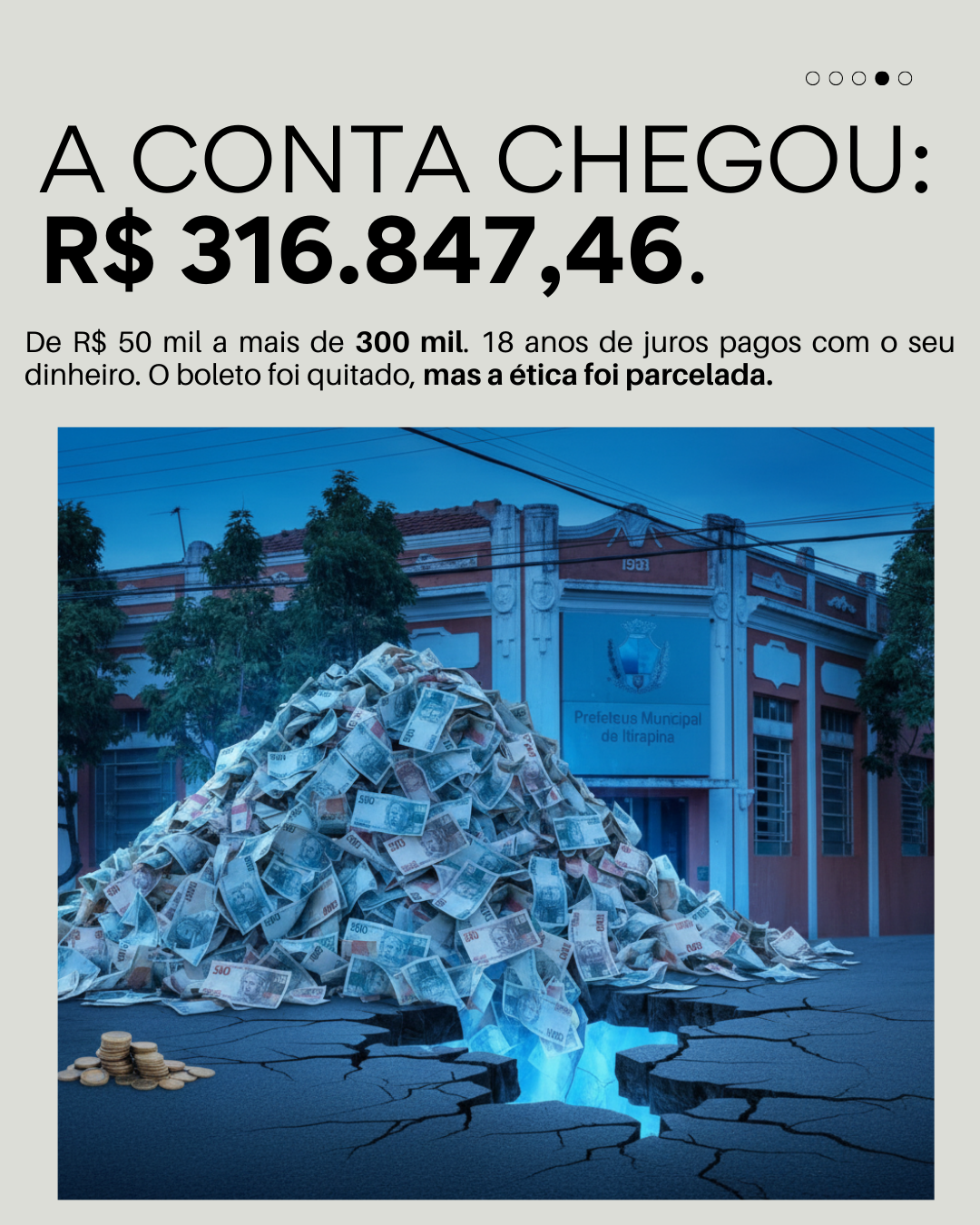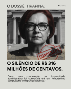 “Se um cidadão comum deve R$ 300 mil ao fisco, ele perde seus bens. Se uma prefeita é condenada por improbidade, ela paga o boleto e mantém a chave do cofre? É essa a justiça que Itirapina merece?”