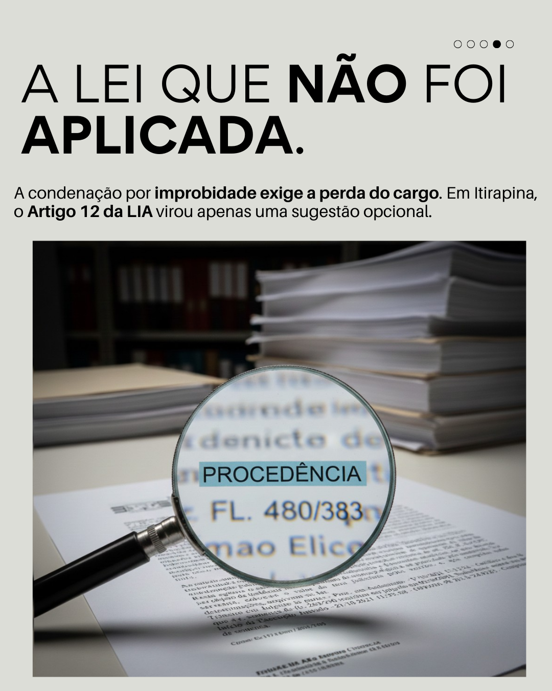Esta é a página que “encomenda” as instituições. Se houve Procedência e o Artigo 12 da LIA exige a perda do cargo e a suspensão dos direitos políticos, por que ela ainda é prefeita?