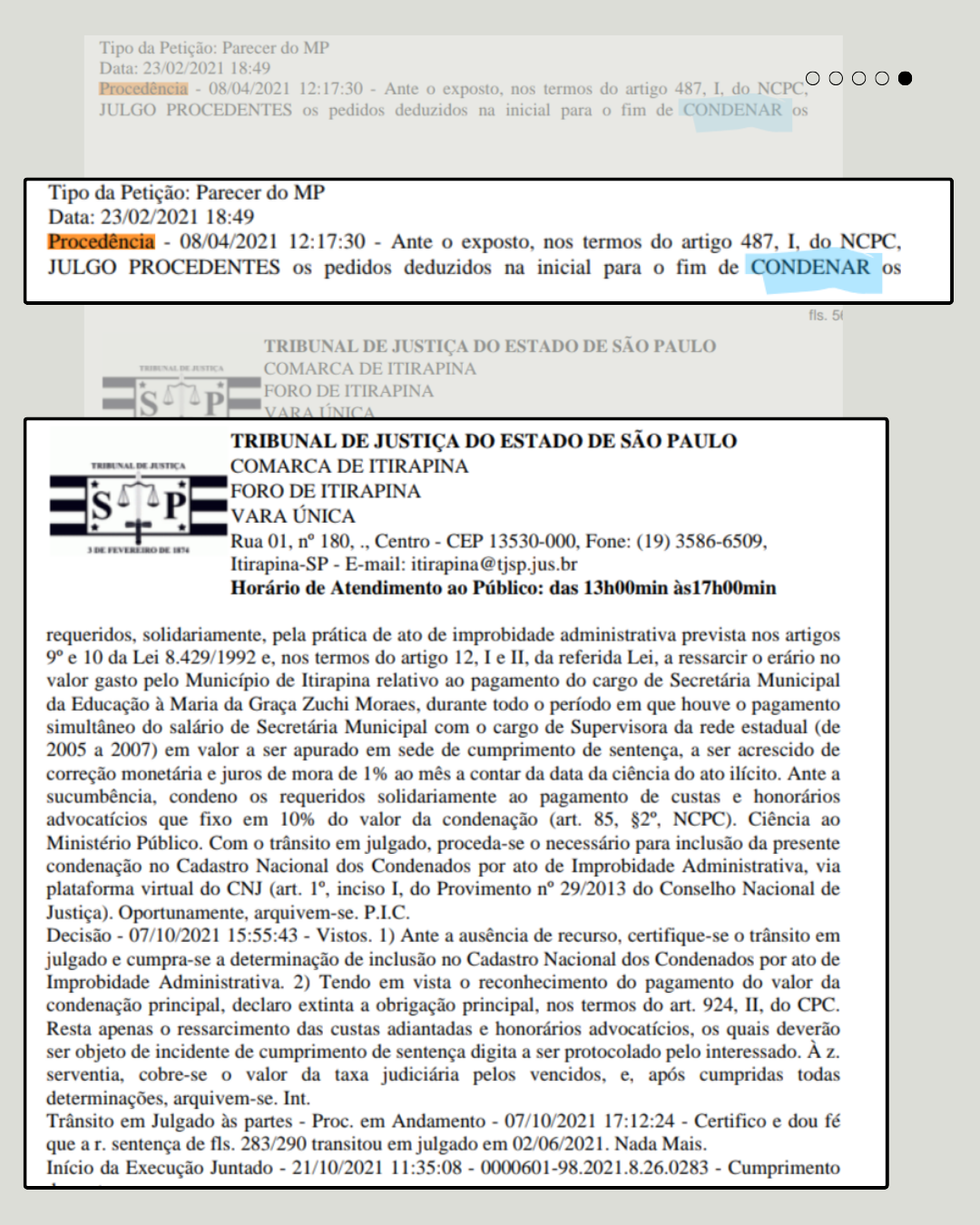 O Termo “Procedência”: Na certidão expedida em 13 de agosto de 2024, consta o status “Arquivado Definitivamente – Procedência Improbidade”. No Direito, “Procedência” significa que o Juiz deu razão à denúncia. A prefeita foi considerada CULPADA.