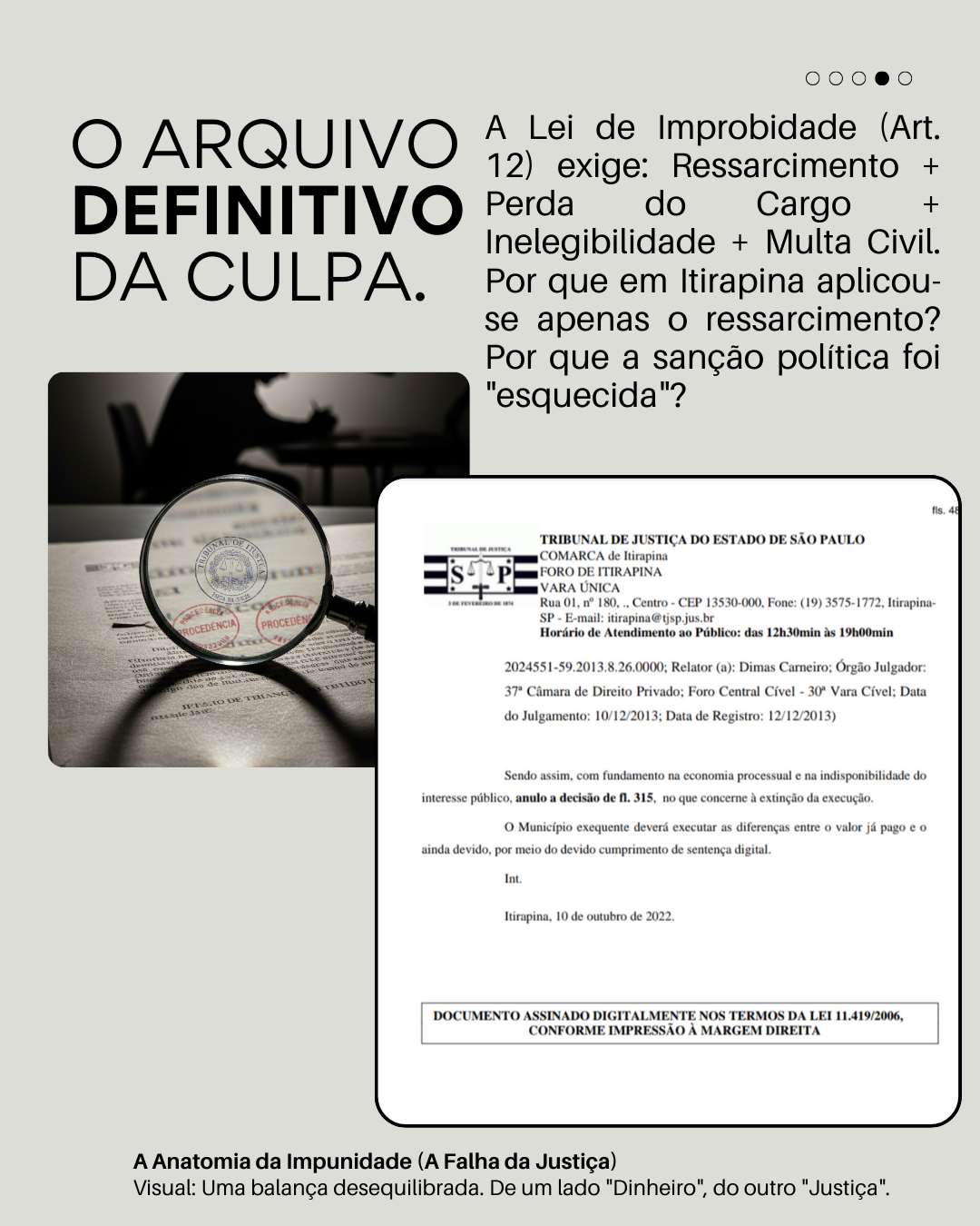O que o cidadão de Itirapina tem em mãos não é apenas uma matéria jornalística, mas um dossiê sobre a eficácia do tempo na política. Analisamos 483 páginas de um processo que começou “manco” e terminou em silêncio. Descubra como a “mão invisível” da prescrição trabalhou a favor de quem detém a chave da cidade.