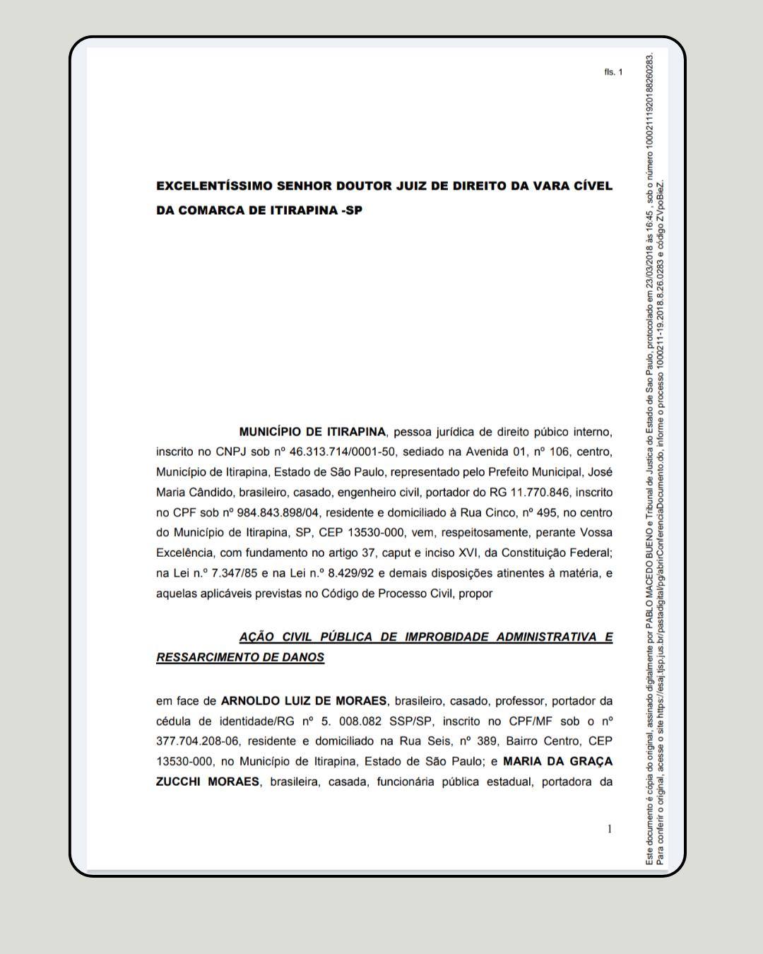 Nós não estamos inventando; estamos lendo as fls. 480/483 que o poder público tentou manter sob sigilo político. Se as autoridades locais falharam ao deixar o prazo prescrever, este jornal não falhará em informar ao povo quem foi o responsável por essa omissão.